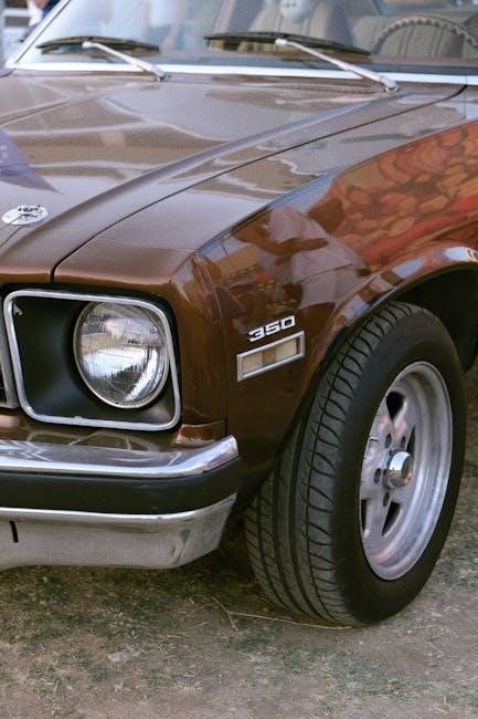 The manual also details tire rotation procedures to ensure even wear, extending tire life. It outlines how to inspect tires for damage, such as cuts or bulges, and provides guidance on when tire replacement is necessary. Following these guidelines ensures optimal safety and performance on the road.